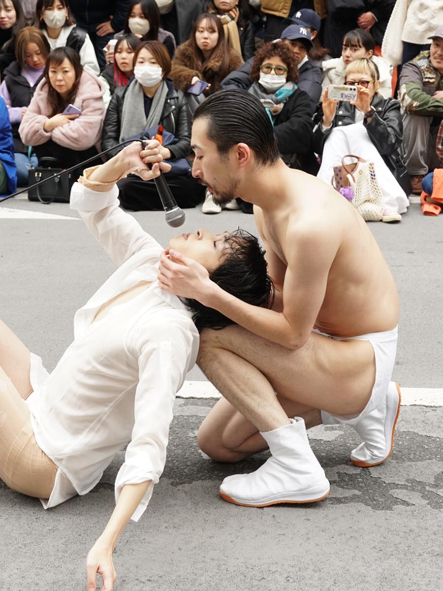 パフォーマンスの上演時間は約30分間、15時30分と16時15分の計2回行われた。身体と音楽によるノンバーバルな構成で、「ストリートから劇場へ」というコンセプトが提示された。