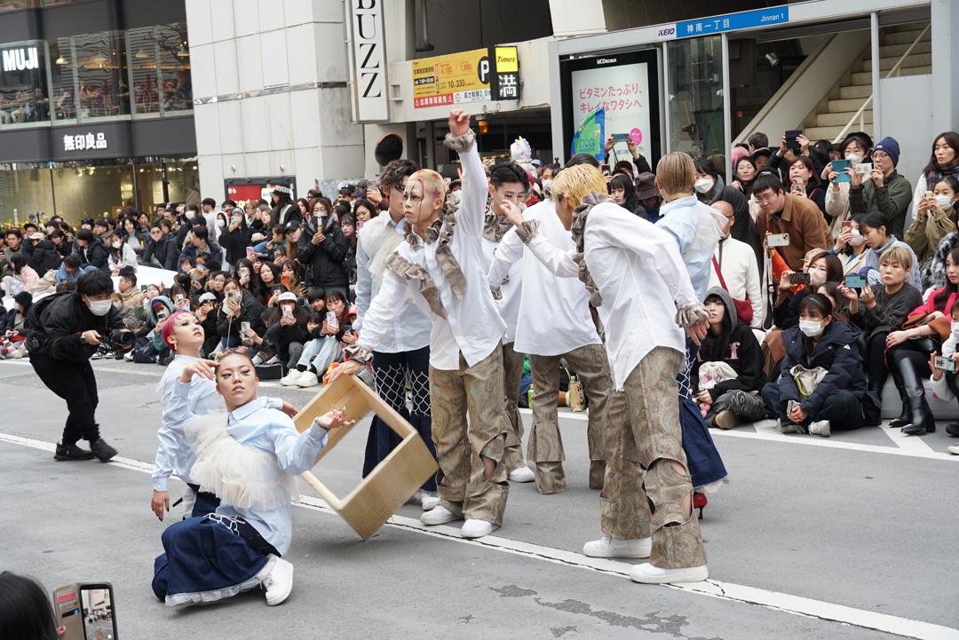「DIG SHIBUYA 2026」の公式プログラムとして、渋谷公園通りで2月14日、路上パフォーマンス「Street×Theater ―未来の渋谷への伏線―」が行われた。