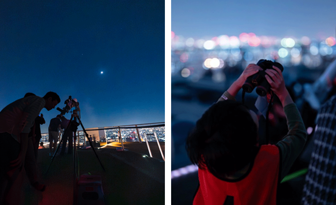 • ROOFTOP天体観測 SHIBUYA 親子プログラム 渋谷上空の天文教室ーオリジナル双眼鏡で観る上弦の月―