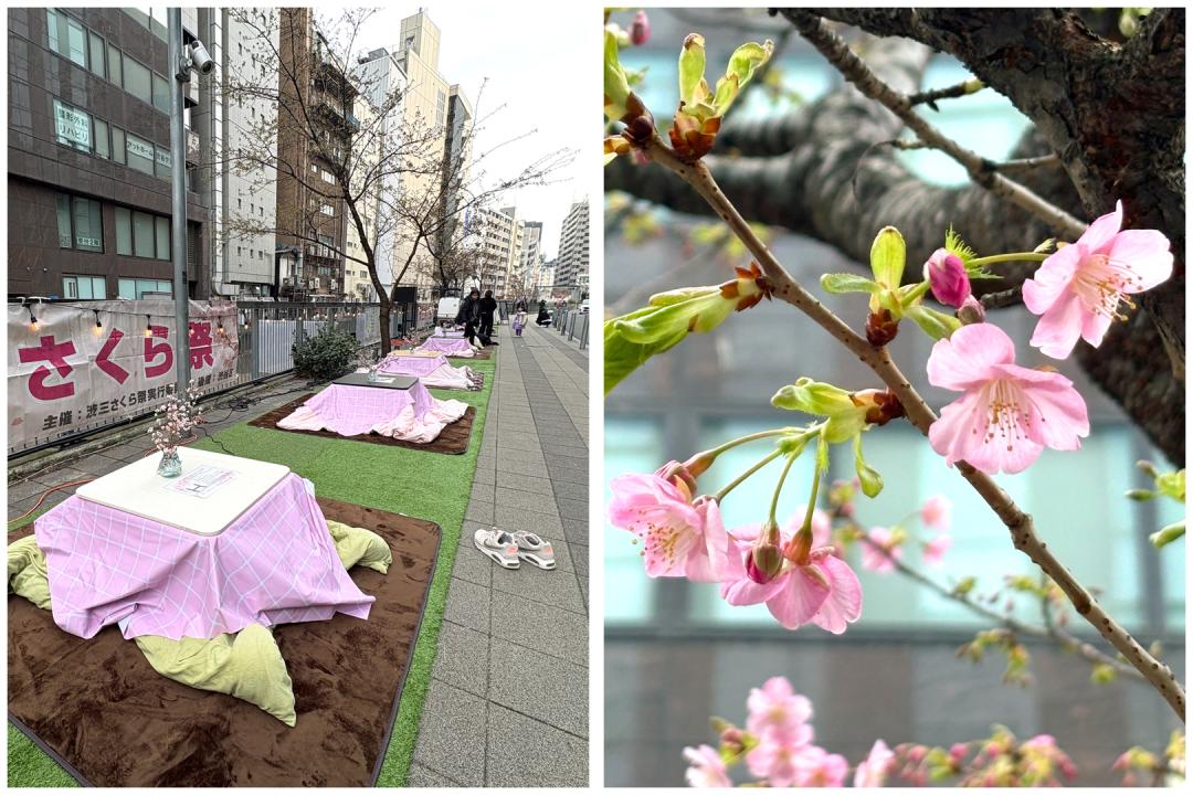 渋谷川沿いの遊歩道「渋谷リバーストリート」で2月13日、「さくら“ホッと”こたつ@渋谷川」が始まった。早咲きの河津桜の開花時期に合わせて開催される恒例イベントで、ひと足早い春の訪れを感じさせている。