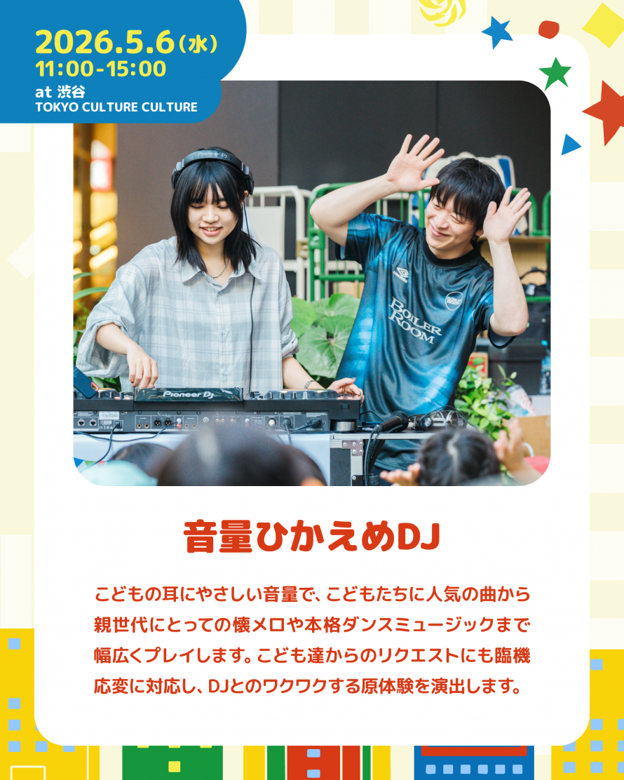 DJタイム:子どもも一緒に楽しめる選び抜かれた音楽で、ダンスフロアを盛り上げます!