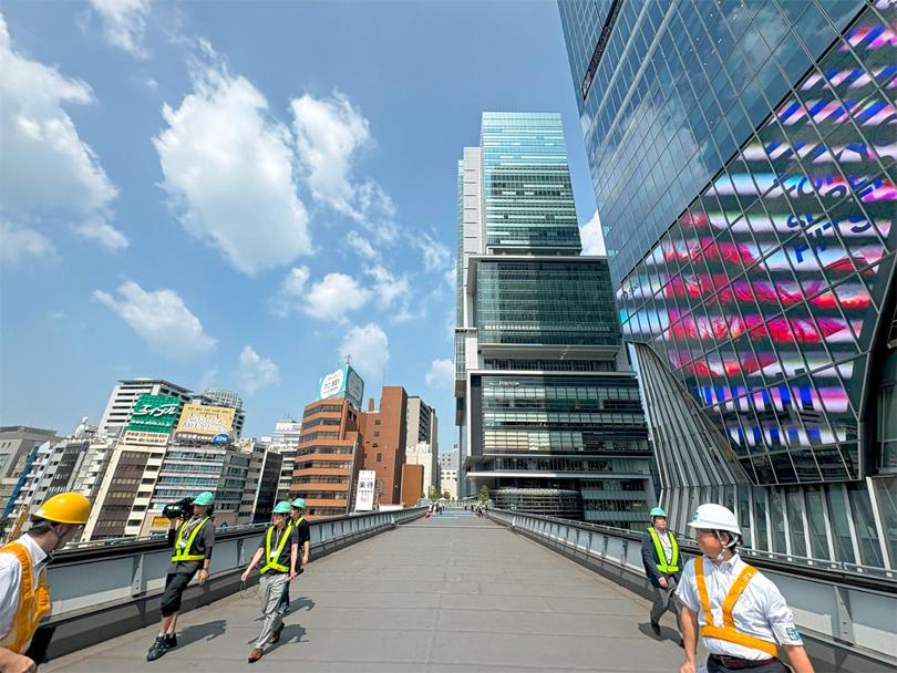 2025年7月8日、空中回廊「東口4階スカイウェイ(仮称)」の建設現場見学会が報道関係者向けに開催された。スカイウェイ上からの風景(右側のビルは「渋谷スクランブルスクエア東棟」、正面奥のビルは「渋谷ヒカリエ」)。
