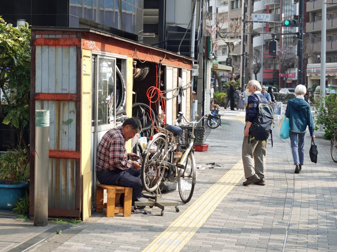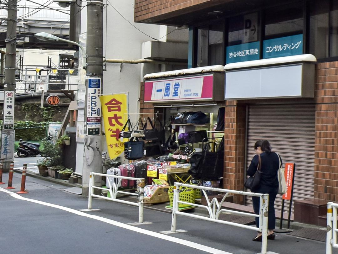 左=桜丘町のディスカウントストア「一風堂」(撮影2018年10月19日、写真は旧ショップ。その後、渋谷サクラステージ開発工事に伴い同じ町内に移転)、右=明治通り沿い、細長いショップで知られた自転車修理店「大木サイクル」(撮影2025年3月)