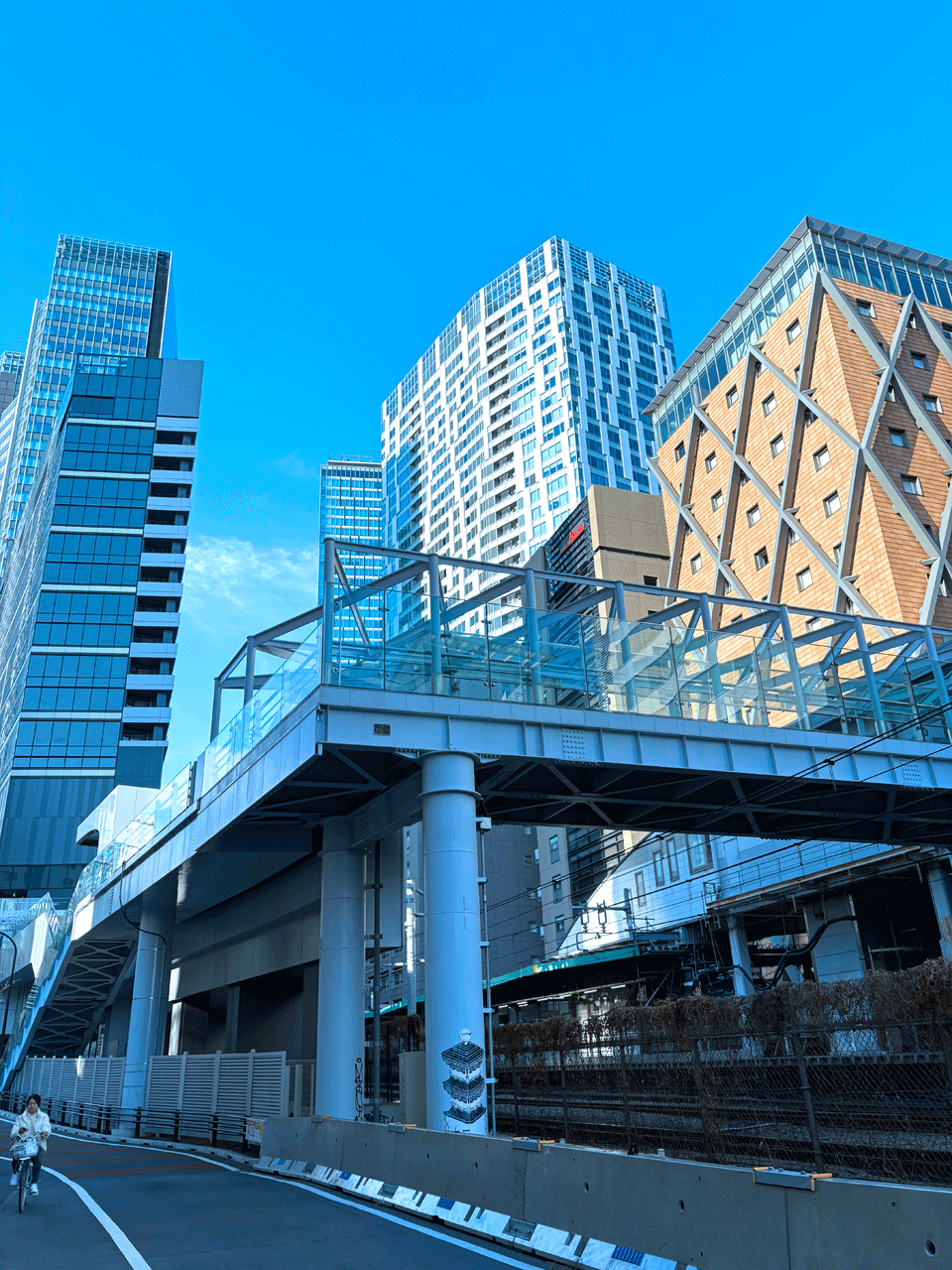 Left: The Shibuya Station South Overpass, which connects Shibuya Sakura Stage and the old new south exit. It is one of the detour routes for pedestrians towards Shibuya. Right: For those commuting by bicycle, we recommend the Shitanmachi Guard route near Ebisu Station, which allows you to go under the JR lines.