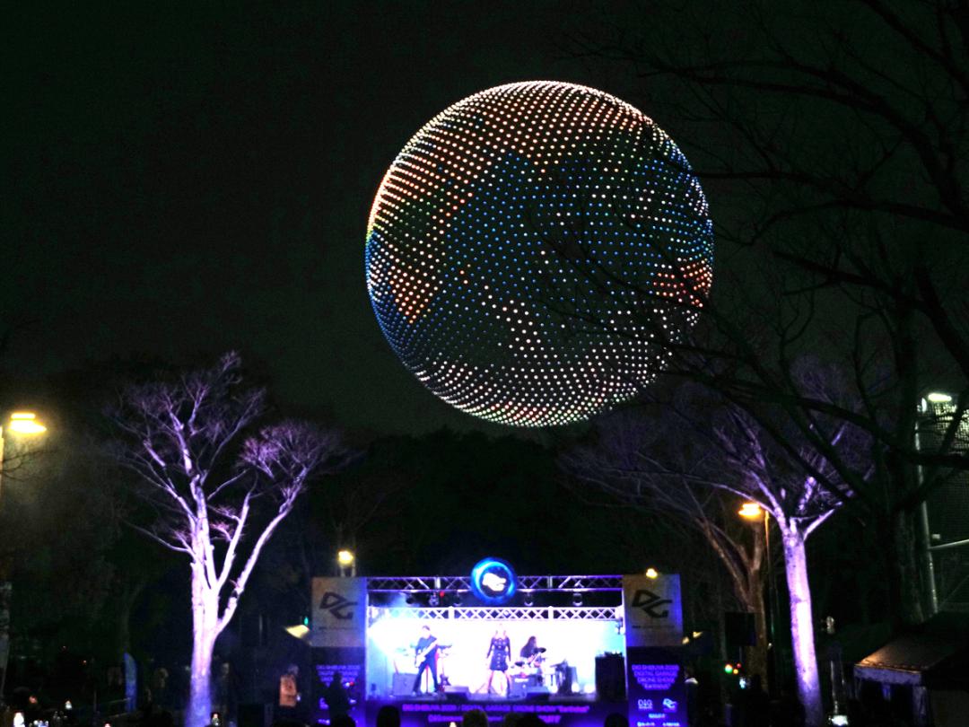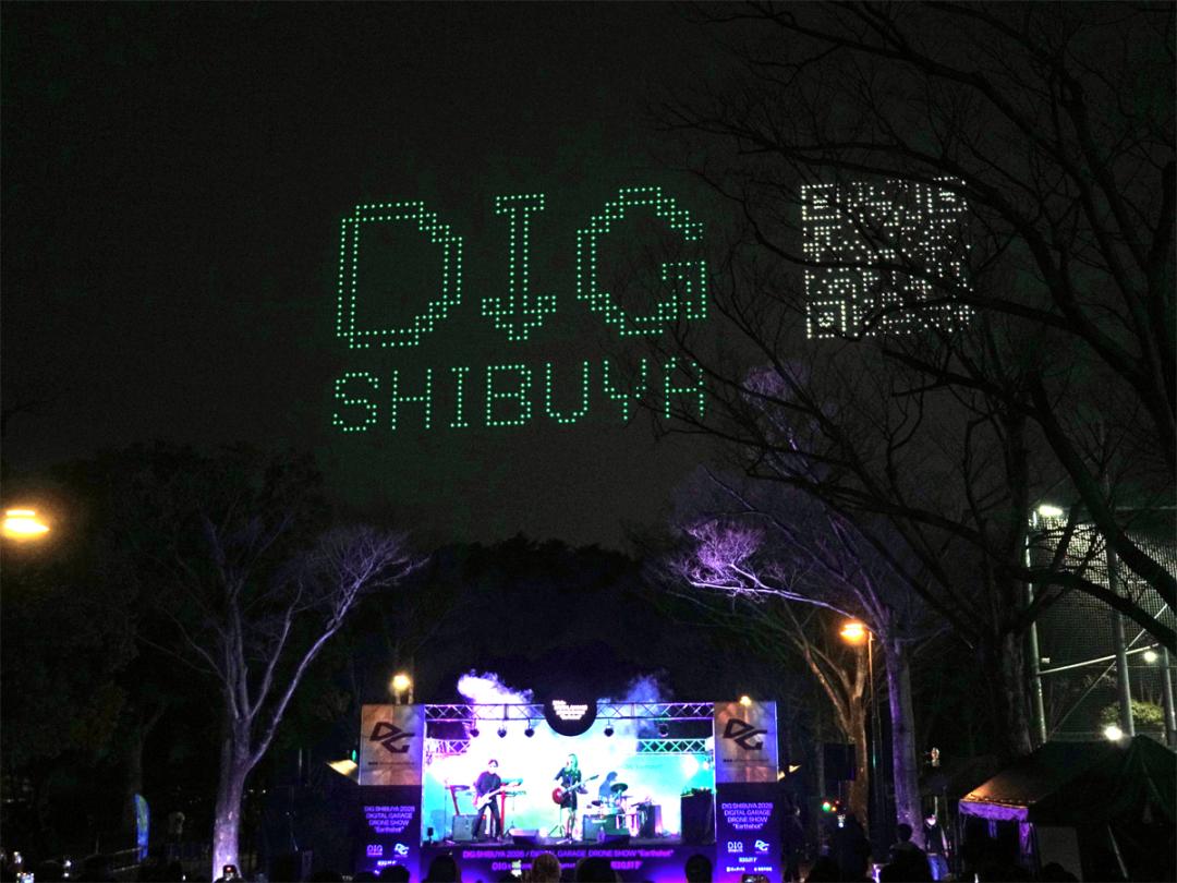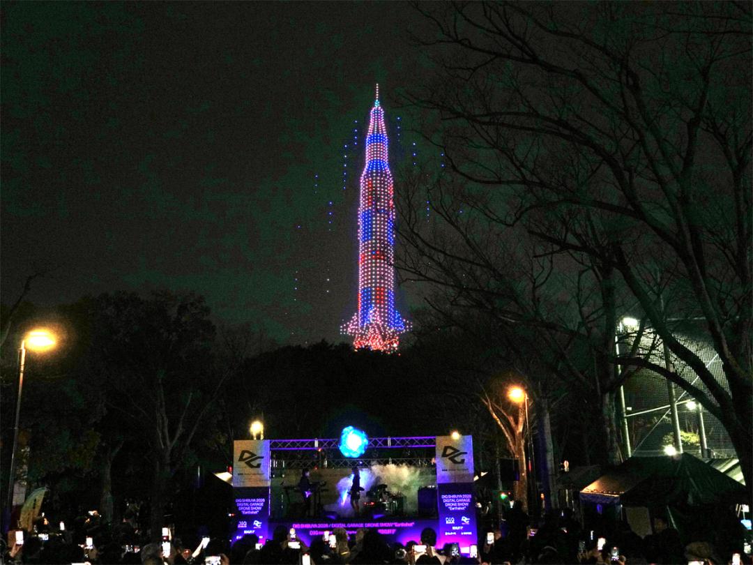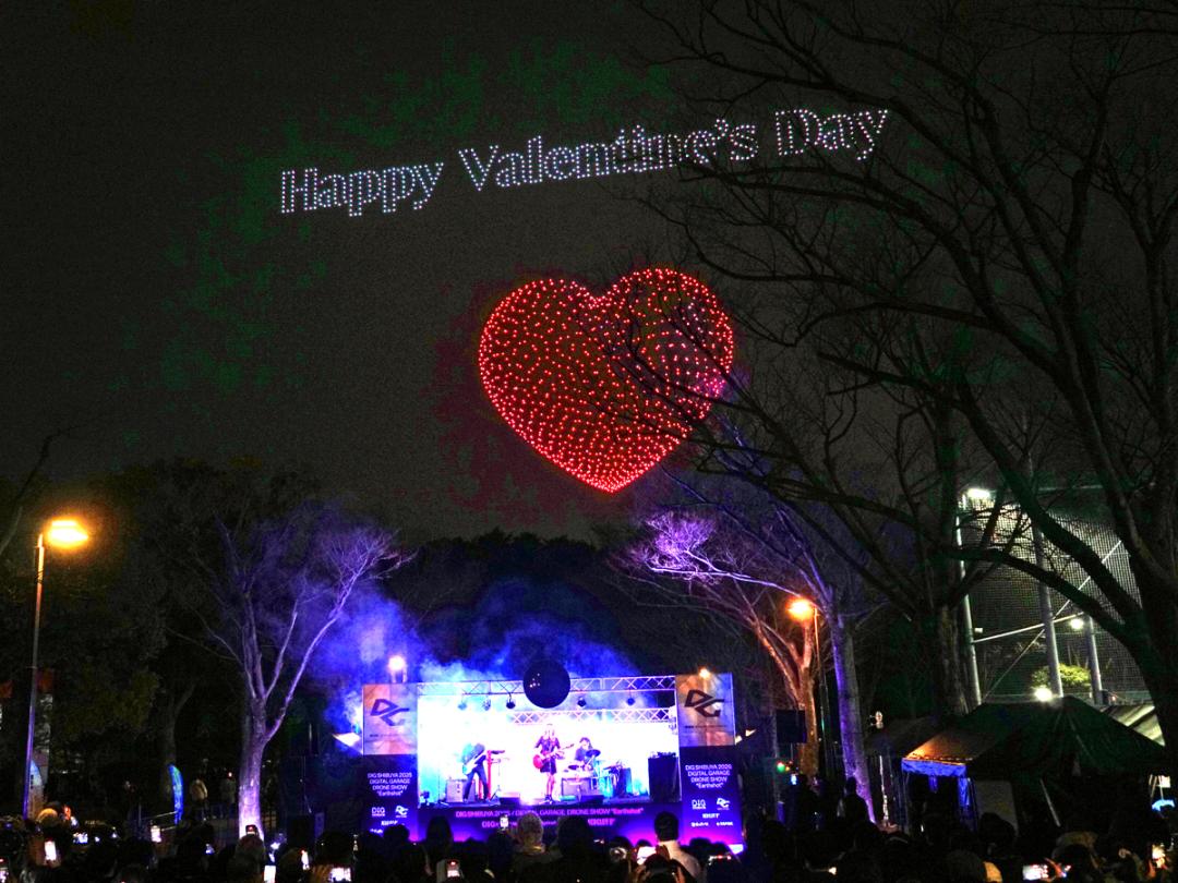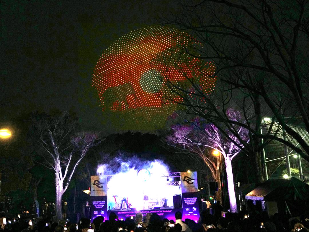 テクノロジーとアートが融合する都市型フェス「DIG SHIBUYA 2026」のハイライトとなるドローンショー「Digital Garage DRONE SHOW “Earthshot”」が2月14日夜、代々木公園上空で開催された。