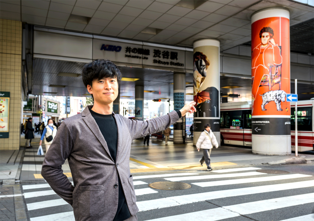 我和負責廣告的澀穀站前區域管理的Takashi Isamoto先生 (左) 和Yugo Kashiwagi先生 (右) 進行了交談