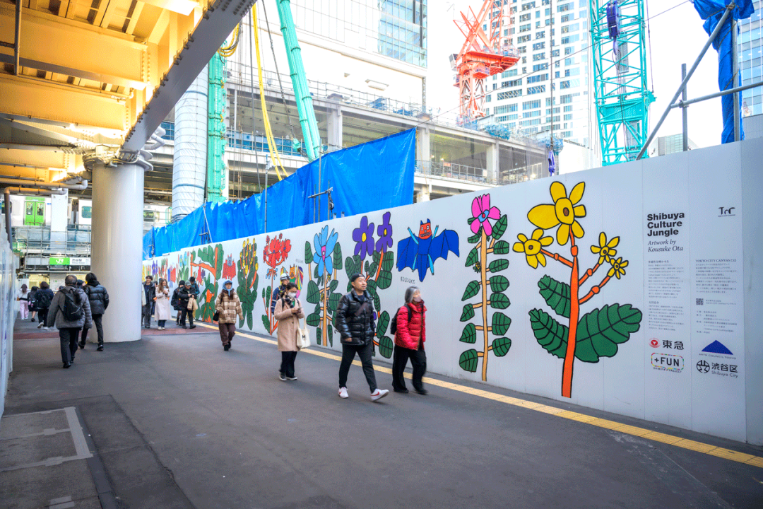 在JR澀谷站西口步道旁的「SHIBUYA SCRAMBLE SQUARE西樓新建工程」臨時圍牆北側,正在進行一項以「澀谷文化叢林-閃耀的多元性」為主題的藝術計畫。該計畫展出了患有嚴重自閉症和智力障礙的藝術家大田浩介的作品。